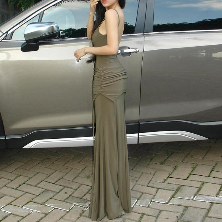 2024秋冬新作 女 レディース 袖なし 吊りスカート ロング ワンピース 台型スカート