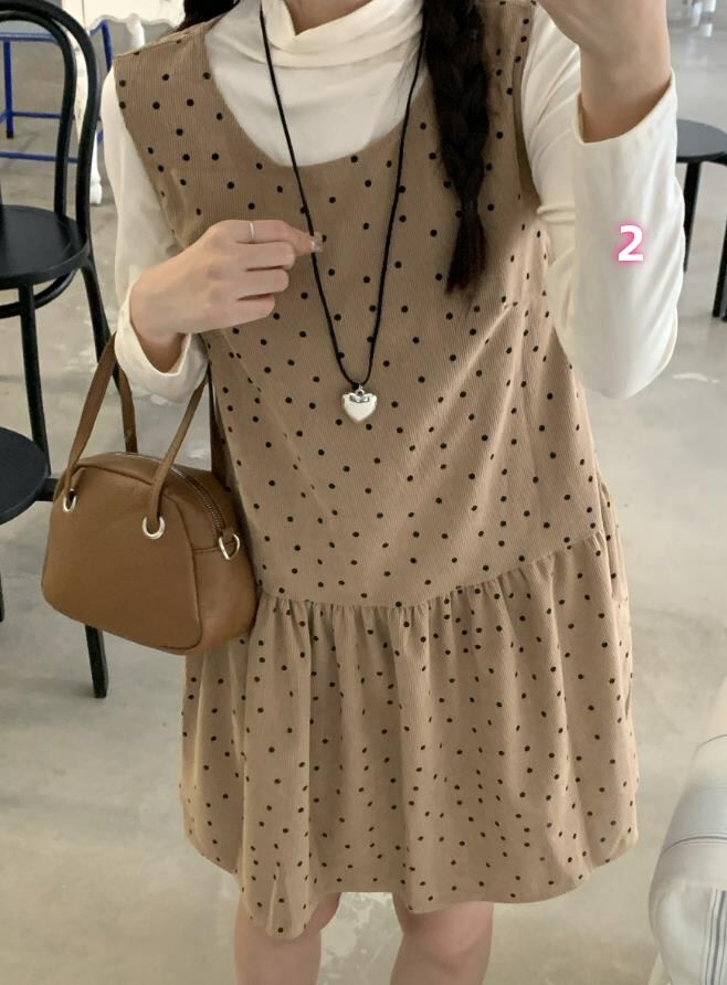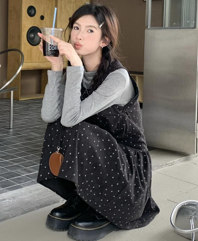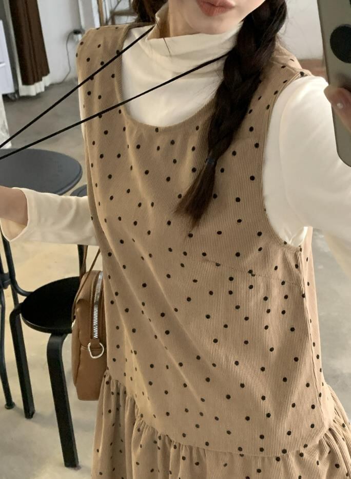 秋冬新作 女 レディース ハイウエスト 袖なし コールテン ミニ ワンピース ドレス 台型スカート セット