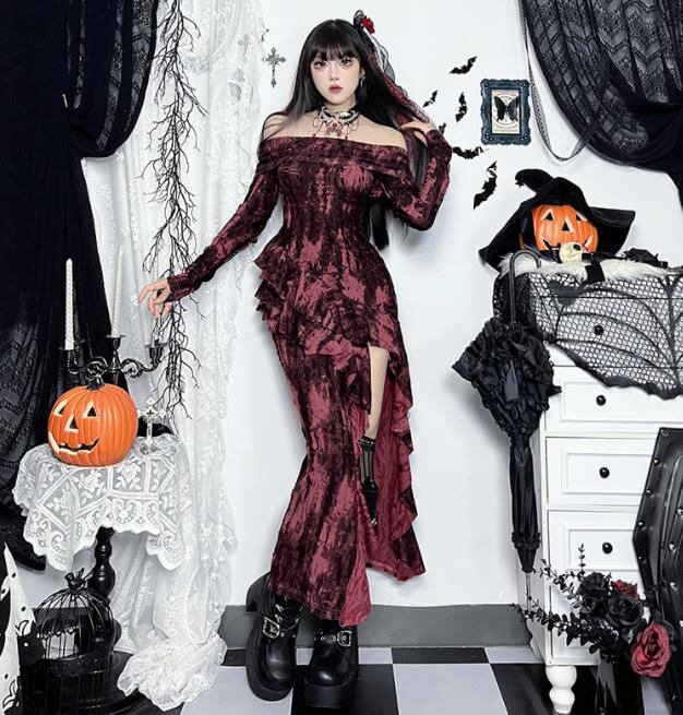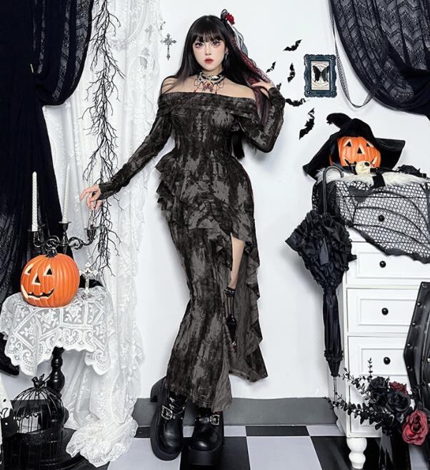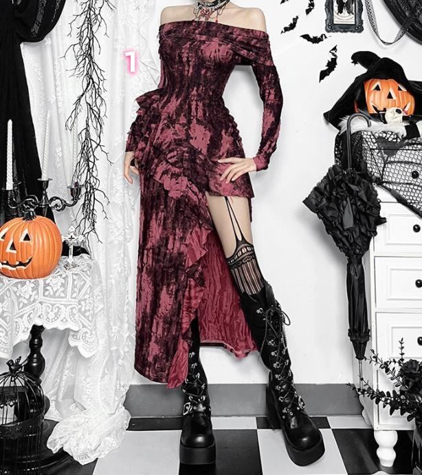 2024秋冬新作 女 レディース ハイウエスト ボートネック 長袖 ロング ワンピース 台型スカート