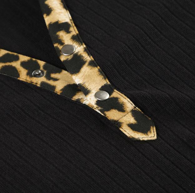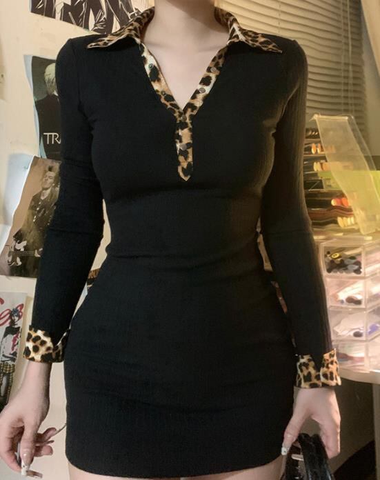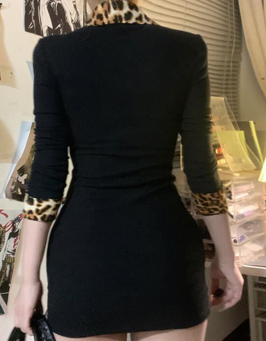 2024秋冬新作 女 レディース 長袖 ニット レオパード柄 ミニ ワンピース ドレス タイトスカート