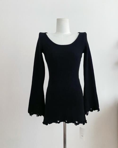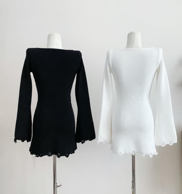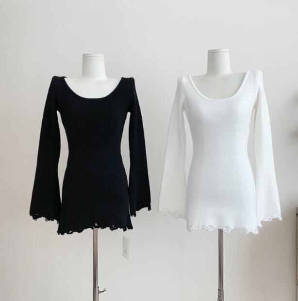 2024秋冬新作 女 レディース ハイウエスト 長袖 ニット 毛糸 ミニ ワンピース ドレス タイトスカート