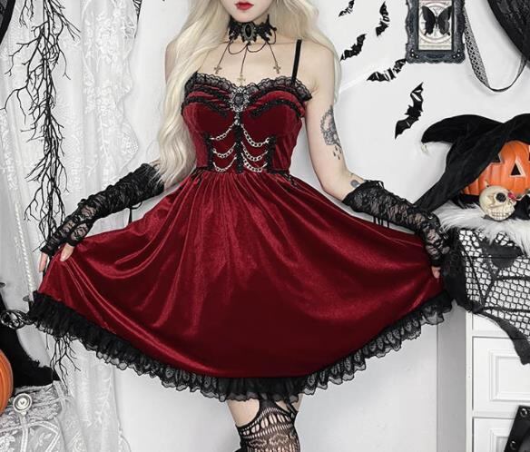 2024秋冬新作 ハロウィン 女 レディース 袖なし 吊りスカート ミニ ワンピース ドレス 台型スカート