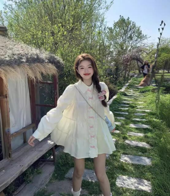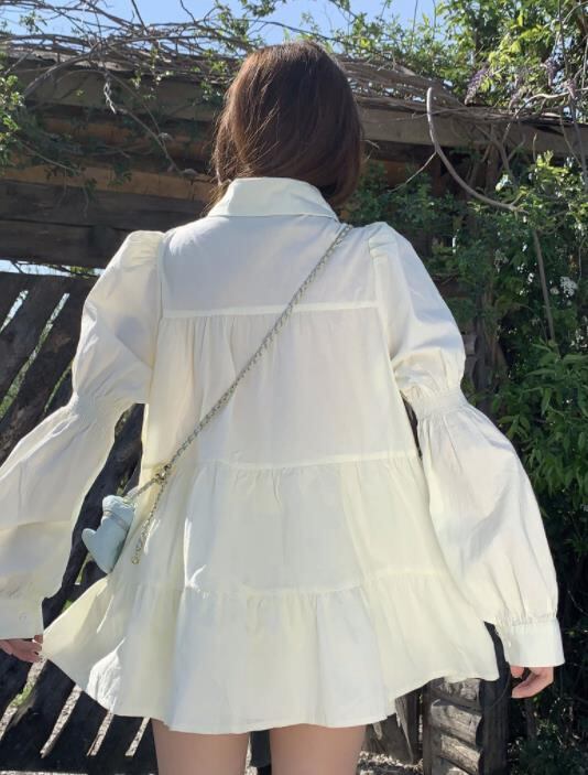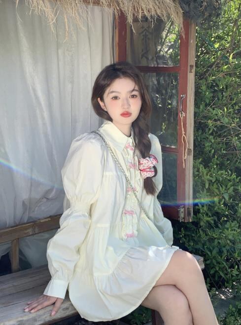 2024秋冬新作 女 レディース ハイウエスト 長袖 シャツ ミニ ワンピース ドレス 台型スカート