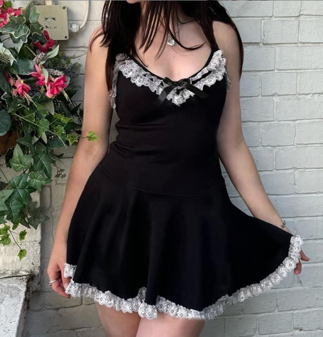 2024秋冬新作 女 レディース 袖なし レース 吊りスカート ミニ ワンピース ドレス 台型スカート