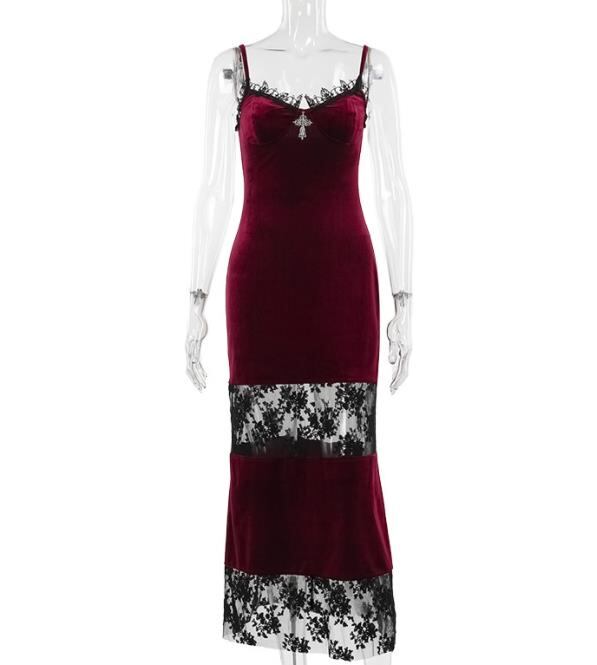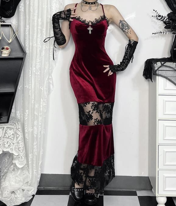 秋冬新作 女 レディース ハイウエスト 袖なし ベロア 吊りスカート ロング ワンピース タイトスカート