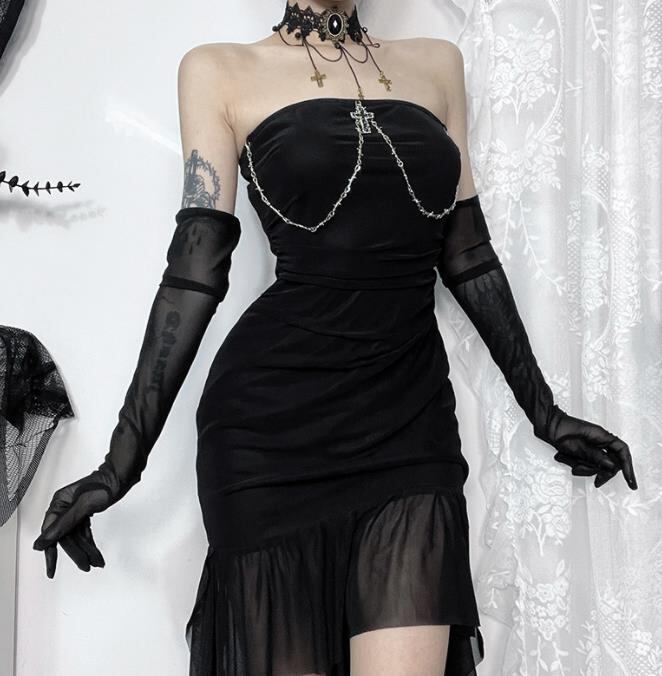 2024秋冬新作 女 レディース ハイウエスト 手袋付け 袖なし ロング ワンピース タイトスカート
