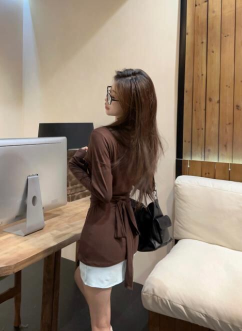 2024春秋新作 女 レディース 長袖tシャツ + 袖なし 吊りスカート ミニ ワンピース 2点セット