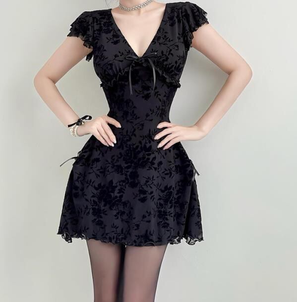 2024春秋新作 女 レディース ハイウエスト ミニ ワンピース ドレス 台型スカート