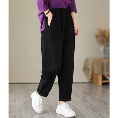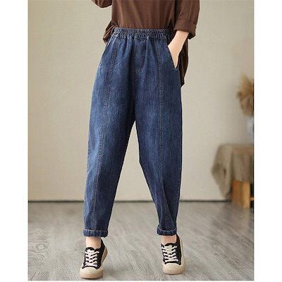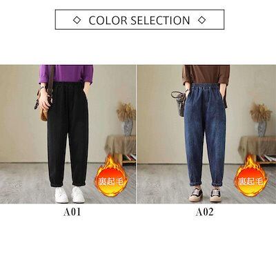 新作セール デニムパンツ レディース 裏起毛 裏ボア 暖かい 秋冬 サルエルパンツ ボトムス 美脚 脚長 保温 防風 おしゃれ カジュアル