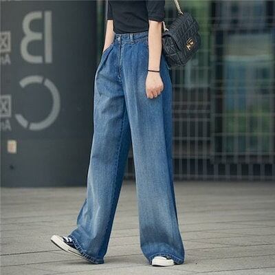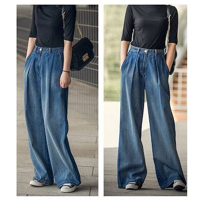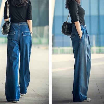 パンツ デニム レディース 秋 ボトムス ジーンズ ズボン ジーパン ガウチョパンツ ワイド バギーパンツ ハイウエスト ロング丈 ストレートパンツ