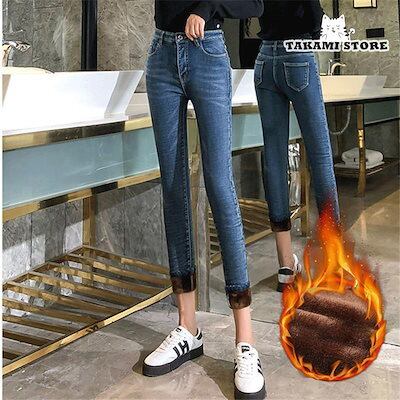 万能流行感 スキニーパンツ デニムパンツ レディース 秋冬 裏ボア 暖パン 美脚 裏起毛 無地 ジーンズ 楽ちん 柔らかい あったか 大きいサイズ ストレッチ