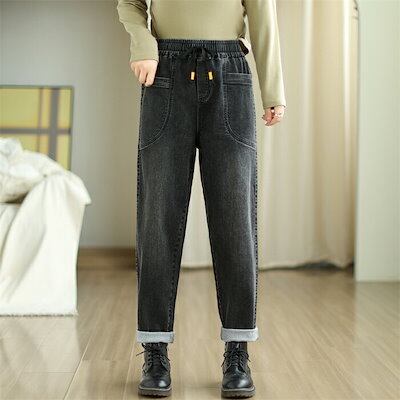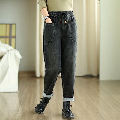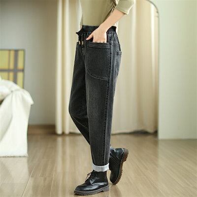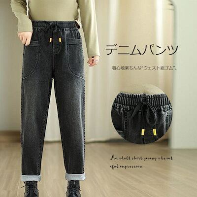 デニムパンツ レディース パンツ 秋冬 テーパードパンツ デニム ジーンズ 細身 大きいサイズ ロングパンツ 高見え サルエルパンツ きれいめ ボトムス 長ズボン ウエストゴム ハイウエスト 総ゴム | DOKO-ME