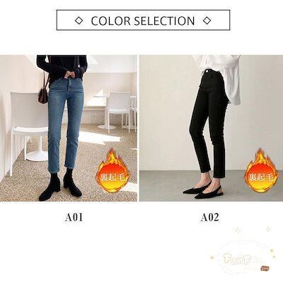 デニムパンツ レディース ジーンズ 裏起毛 裏ボア 暖かい 秋冬 九分丈 Gパン ボトムス 美脚 脚長 保温 防風 おしゃれ カジュアル
