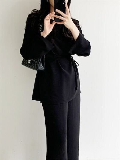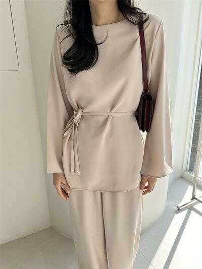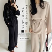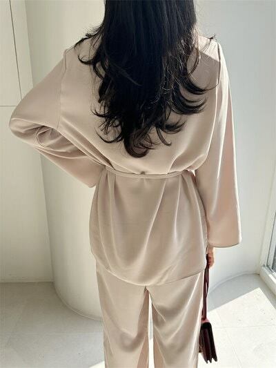 セットアップ レディース ワイドパンツ 長袖トップス ブラウス 春 秋 トップス パンツ ロング丈 ロングパンツ ウエストゴム フォーマル ハイウエスト 上品 2点セット ポケット 落ち感 着痩せ シ | DOKO-ME