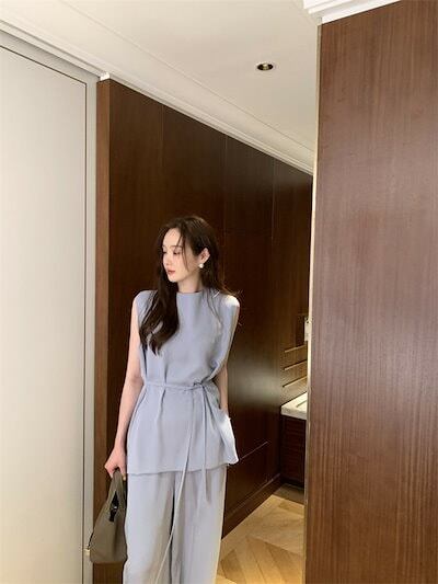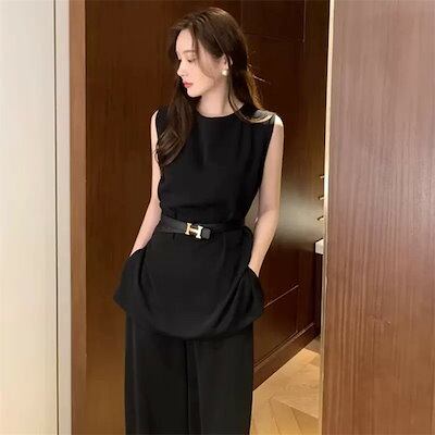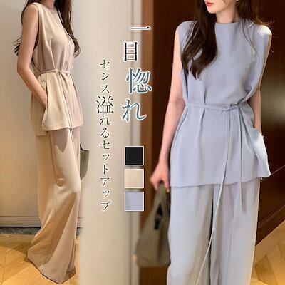 セットアップ レディース ワイドパンツ タンクトップノースリーブブラウス 春 夏 トップス パンツ ロング丈 ブラウス ロングパンツ フォーマル ハイウエスト 上品 2点セット 高級感 涼しい 着痩せ | DOKO-ME