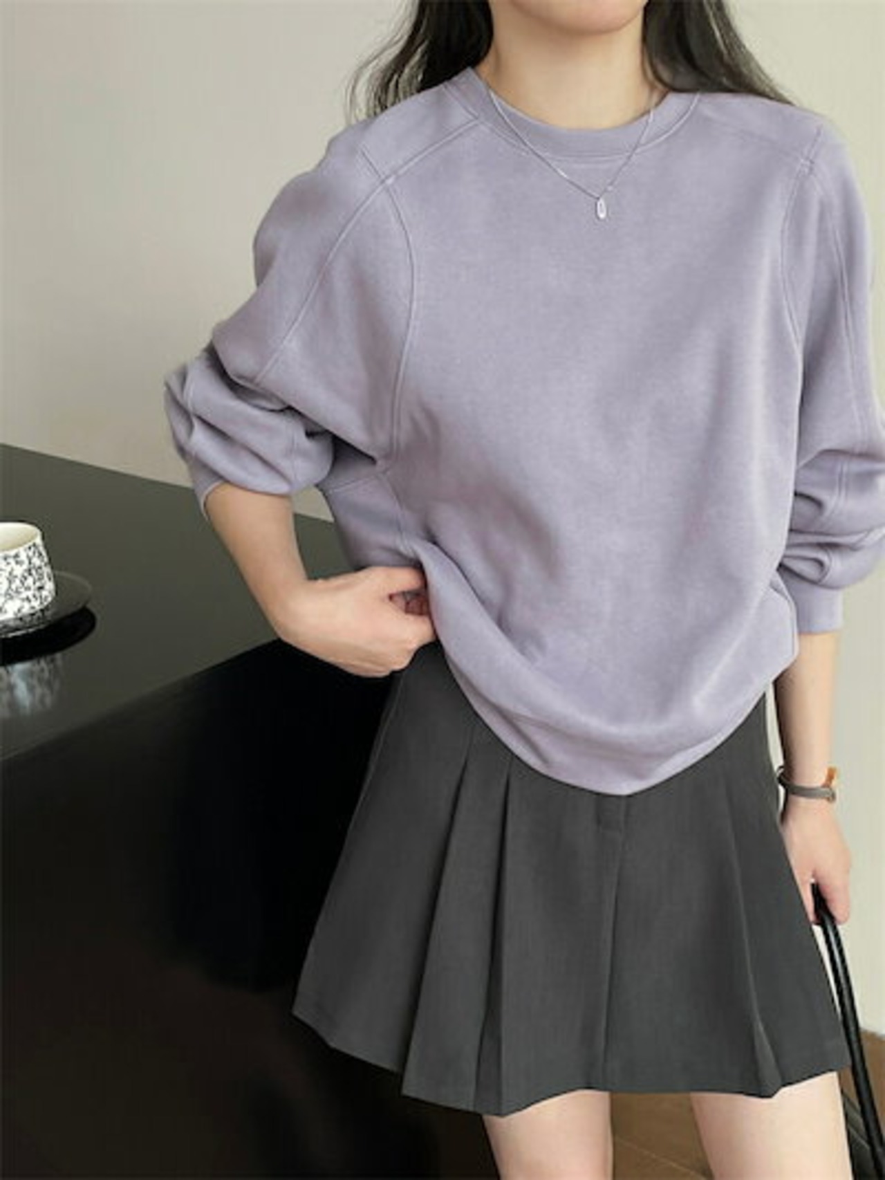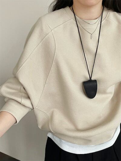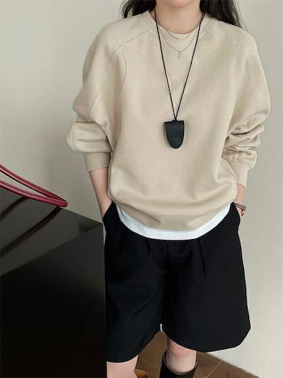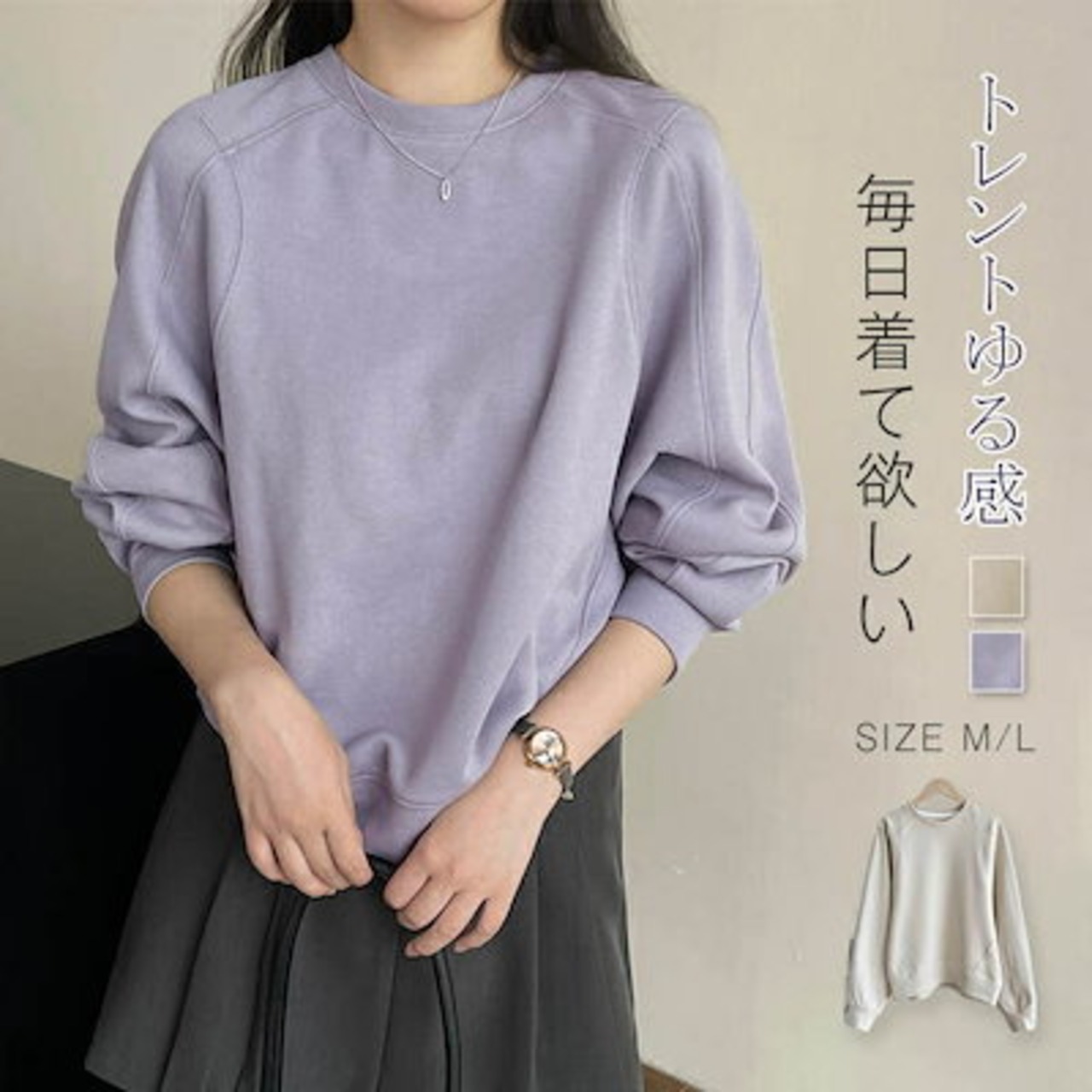 トレーナー レディース 春 秋 トップス プルオーバー 長袖 ラウンドネック スウェット ボリューム ゆったり カジュアル 無地 オーバーサイズ 韓国ファッション ビッグシルエット ゆったり 重ね着 | DOKO-ME