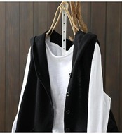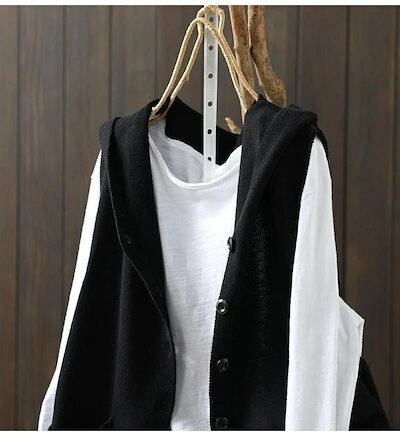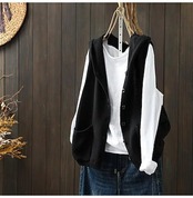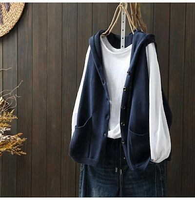 フード付き ジレ ノースリーブ 厚手 ニットパーカー ニットベスト 重ね着 ベスト 体型カバー セーター トップス ニット 春服 カジュアル レディース レイヤード 前開き ゆったり ポケット付き 秋 | DOKO-ME