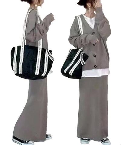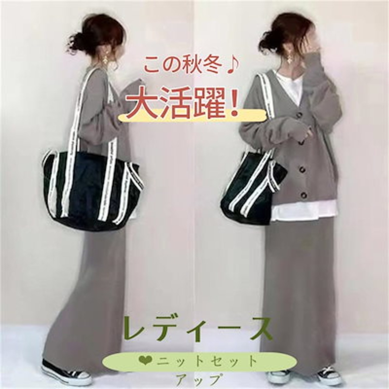 マキシ セーター ロングスカート Vネック フレア ジャケット スカート スカートスーツ ギャザー コート タイトスカート ニット レディース 長袖 フリル 春秋冬 トップス カジュアル 上下セット | DOKO-ME
