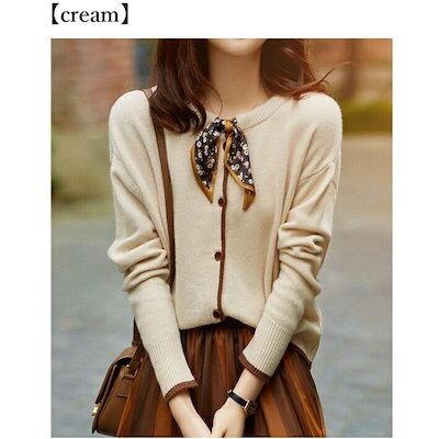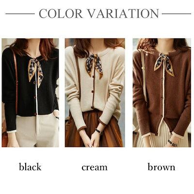 スカーフ付き 長袖 韓国 春 茶色 きれいめ ブラウン リボン オフィスカジュアル ラウンドネック セーター ボウタイ 黒 / 冬 ブラック アイボリー 清楚 秋 オフィス レディース ゆったり クー | DOKO-ME