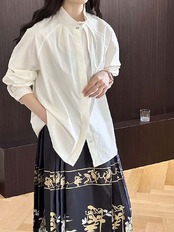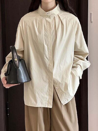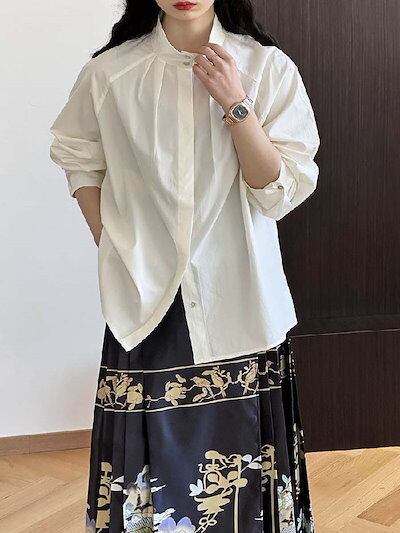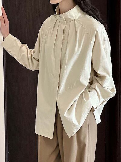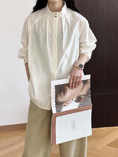 シャツ ハイネック レディース 秋 春 長袖 シャツ ブラウス スタンドカラー 大きいサイズ ゆったりボリューム感 オシャレ シンプル カジュアル 着回し 体型カバー ゆったり オフィス フォーマル | DOKO-ME