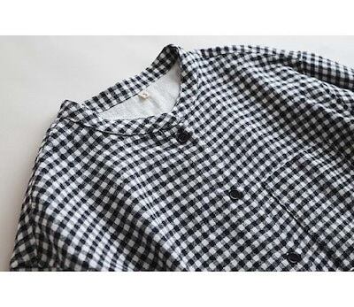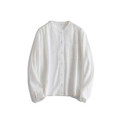 シャツ ブラウス 春 秋 長袖 レディース 綿100% コットン シャツ ノーカラー レディース ホワイト チェック柄 綿 トップス 通気性 シンプル 大きいサイズ 柔らかい 着心地いい 肌触りいい | DOKO-ME