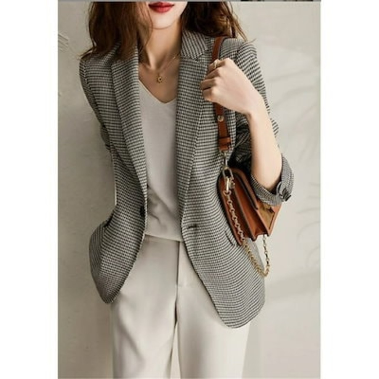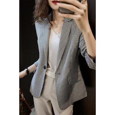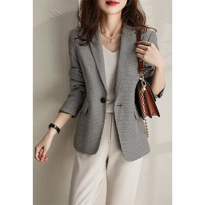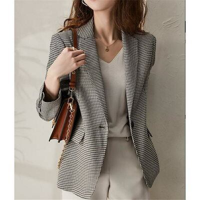 テーラードジャケット チェック柄 レディース 春 秋 コート チェック アウター スプリングコート 千鳥格子 羽織 トップス とろみコート 着回し力 レディース 着痩せ シンプル おしゃれ 上品 フェ | DOKO-ME