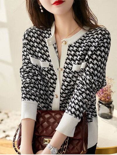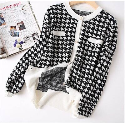 ニットカーディガン レディース 春 秋 羽織 千鳥格子 七分袖 サマーニット 2way 長袖 薄手 カーディガン vネック サマーニット冷房対策 羽織 20代 30代 40代 50代 | DOKO-ME