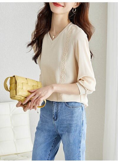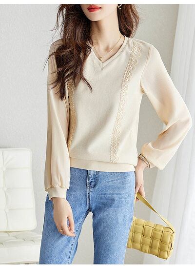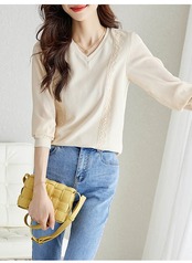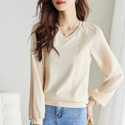 ブラウス シャツ レディース 春 秋 長袖 きれいめ 30代 40代 50代 着やせ 上品 大きいサイズ ゆったり きれいめ おしゃれ レース 刺繍 vネック オフィスカジュアル