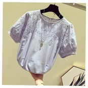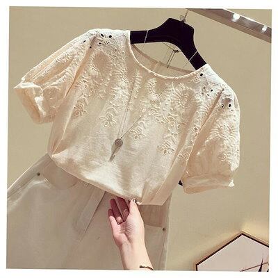 ブラウス レディース 40代 春夏 新作 オシャレ ブラウス レース シャツ 半袖トップス パフスリーブ ブラウス 大人 通勤 ゆったり シャツ 韓国風 30代 50代