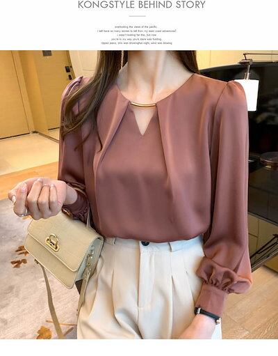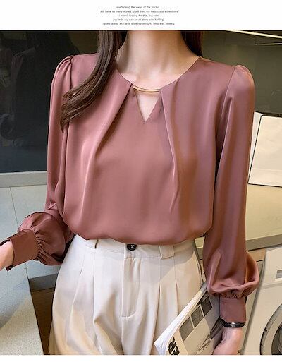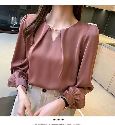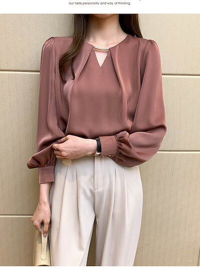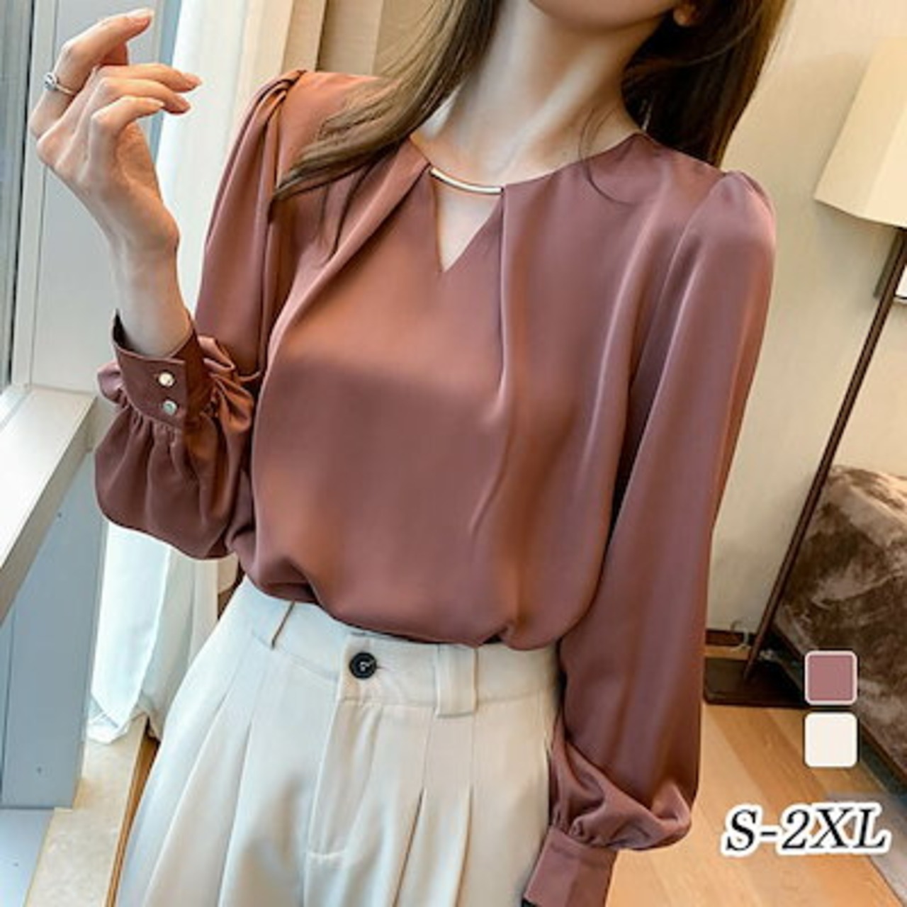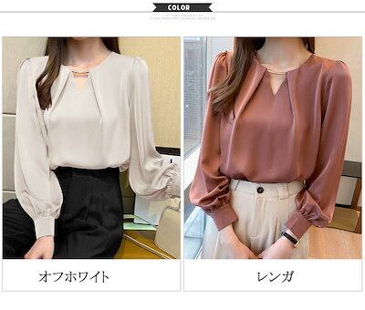 ブラウス レディース シャツ 綿 vネック S M L LL 3Lファッション レディース トップス 春 春服 秋 フレア シンプル 無地 体型カバー おしゃれ オフィス カジュアル トレンド 長袖 | DOKO-ME