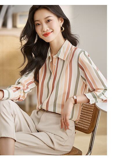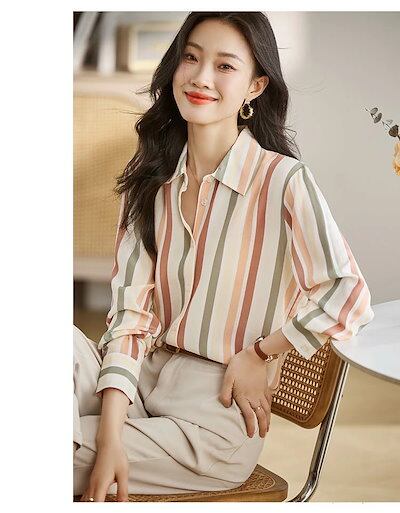 シャツ ブラウス レディース 秋 冬 トップス 長袖 きれいめ ストライプ柄 春 オフィスカジュアル フォーマル オフィス ビジネス おしゃれ 結婚式 大人通勤OL 20代 30代 40代 50代 | DOKO-ME
