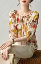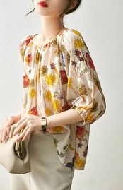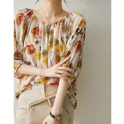ブラウス レディース トップス シャツ 秋 春 花柄 総柄 七分袖 ブラウス カジュアル プルオーバーブラウス おしゃれ きれいめ トップス