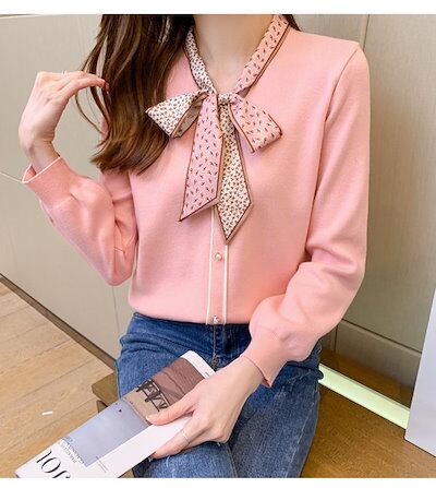 ブラウス レディース 春 ビッグリボン 長袖 ボウタイ 大人 可愛い おしゃれ きれいめ
