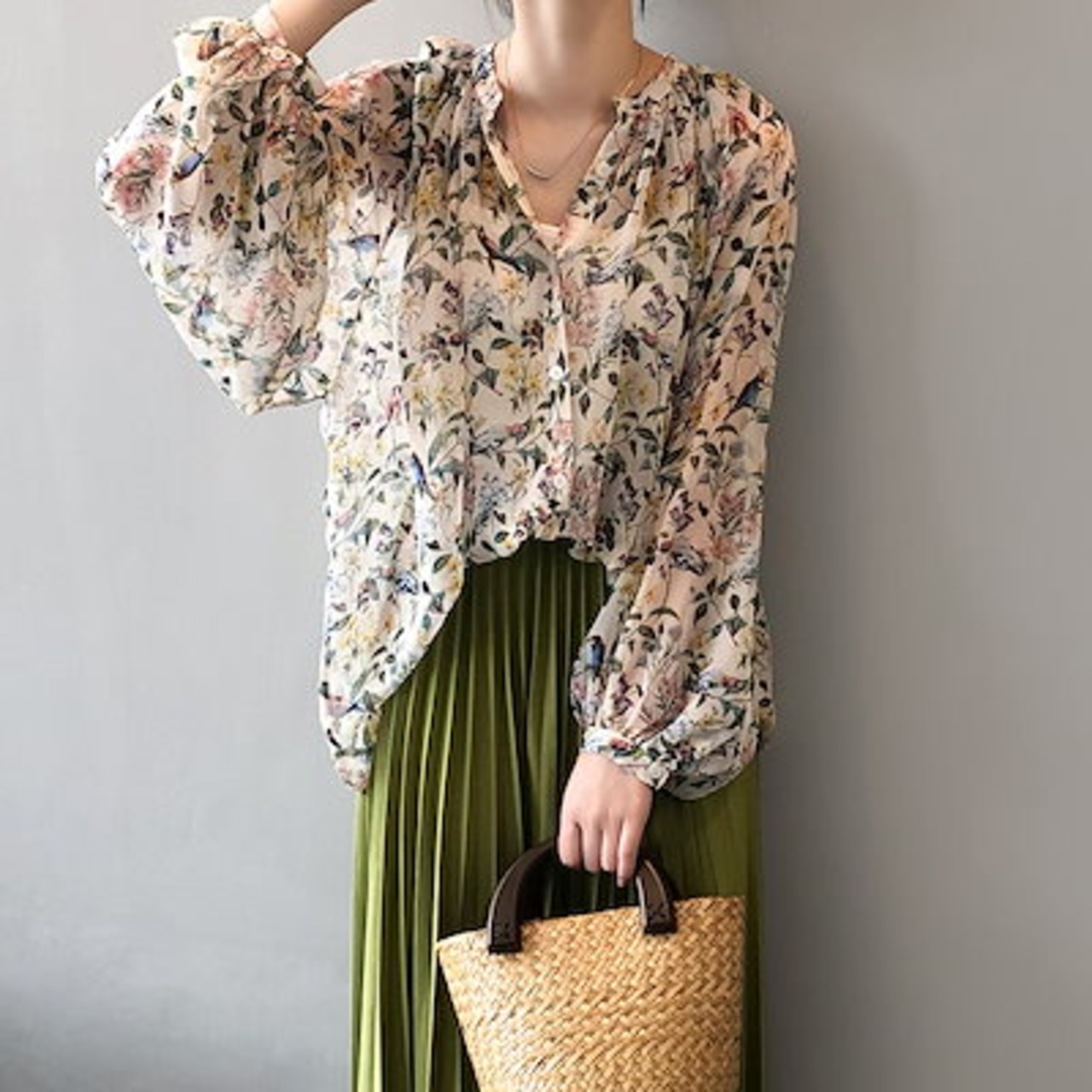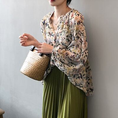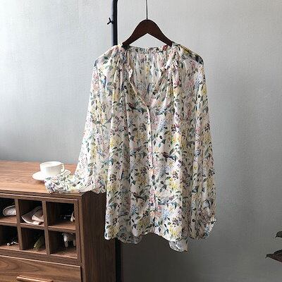 ブラウス レディース 七分袖ブラウス 春夏 オフィスブラウス 花柄 オシャレブラウス シフォントップス 韓国風 大人 ゆったりシャツ UVカット 40代 30代 50代