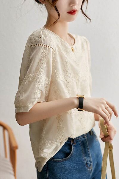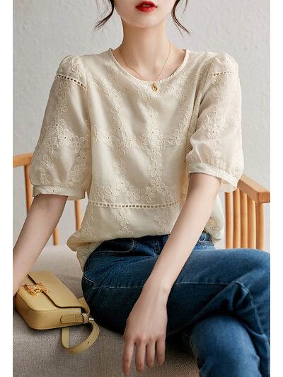 ブラウス レディース 春 夏 トップス 五分袖 半袖 シンプル ナチュラル フェミニン オフィス カジュアル お呼ばれ 通勤 OL きれいめ