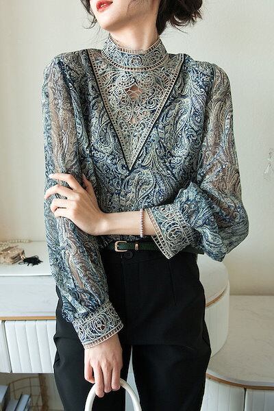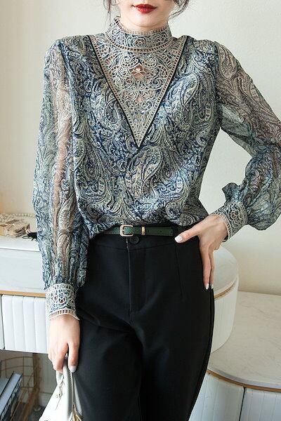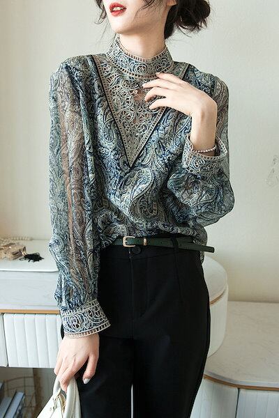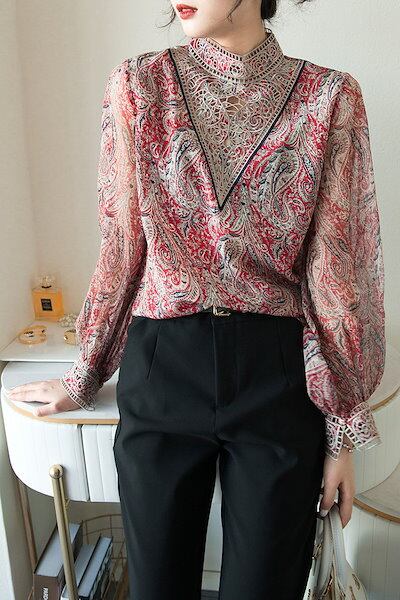 シャツ ブラウス トップス レディース 春 総柄 シャツ ブラウス 長袖 トップス ブラウス 大人 通勤 ゆったり シャツ おしゃれ 30代 40代 50代