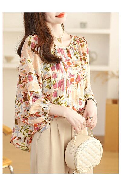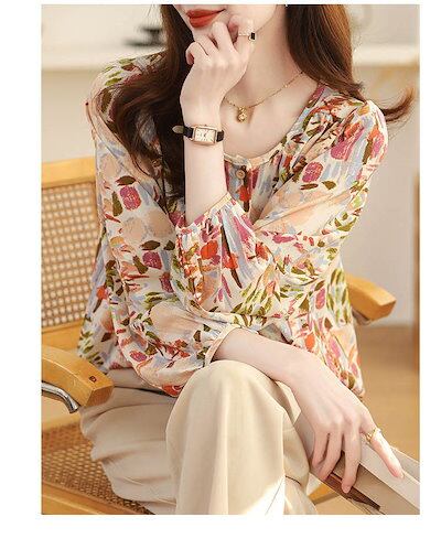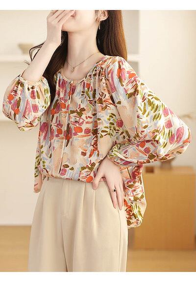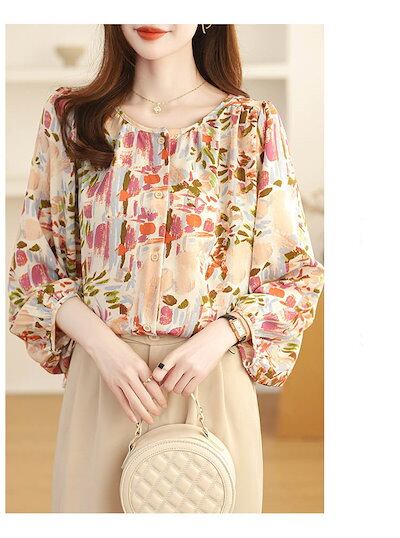 ブラウス レディース 春夏 シャツブラウス トップス プルオーバー 長袖 花柄 フェミニン 大人 30代 40代 50代 60代 きれいめ 着やせ エレガント おしゃれ 可愛い 二次会 同窓会 女子会 | DOKO-ME