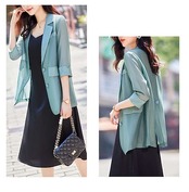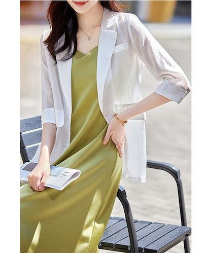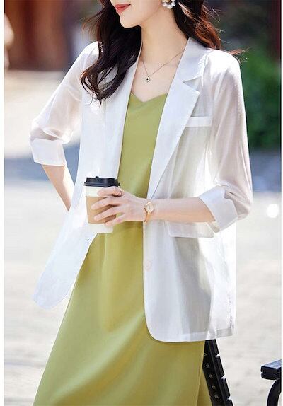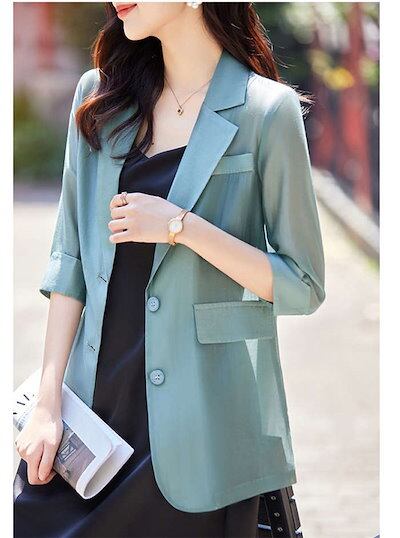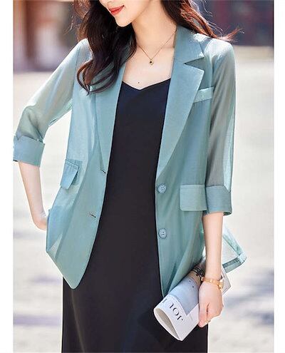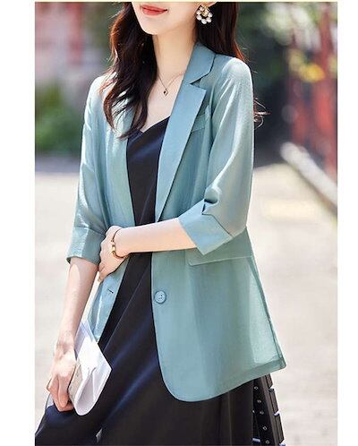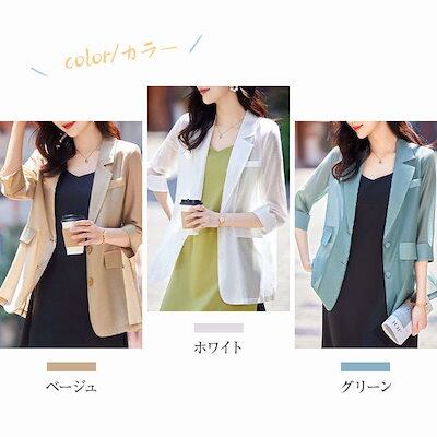 サマージャケット レディース テーラードジャケット 7分袖 ロング丈 無地 薄手 大きいサイズ 冷房対策 アウター トップス UVカット 春 夏 秋 アウター 入園 入学 卒業式 長袖 上着 オフィス | DOKO-ME