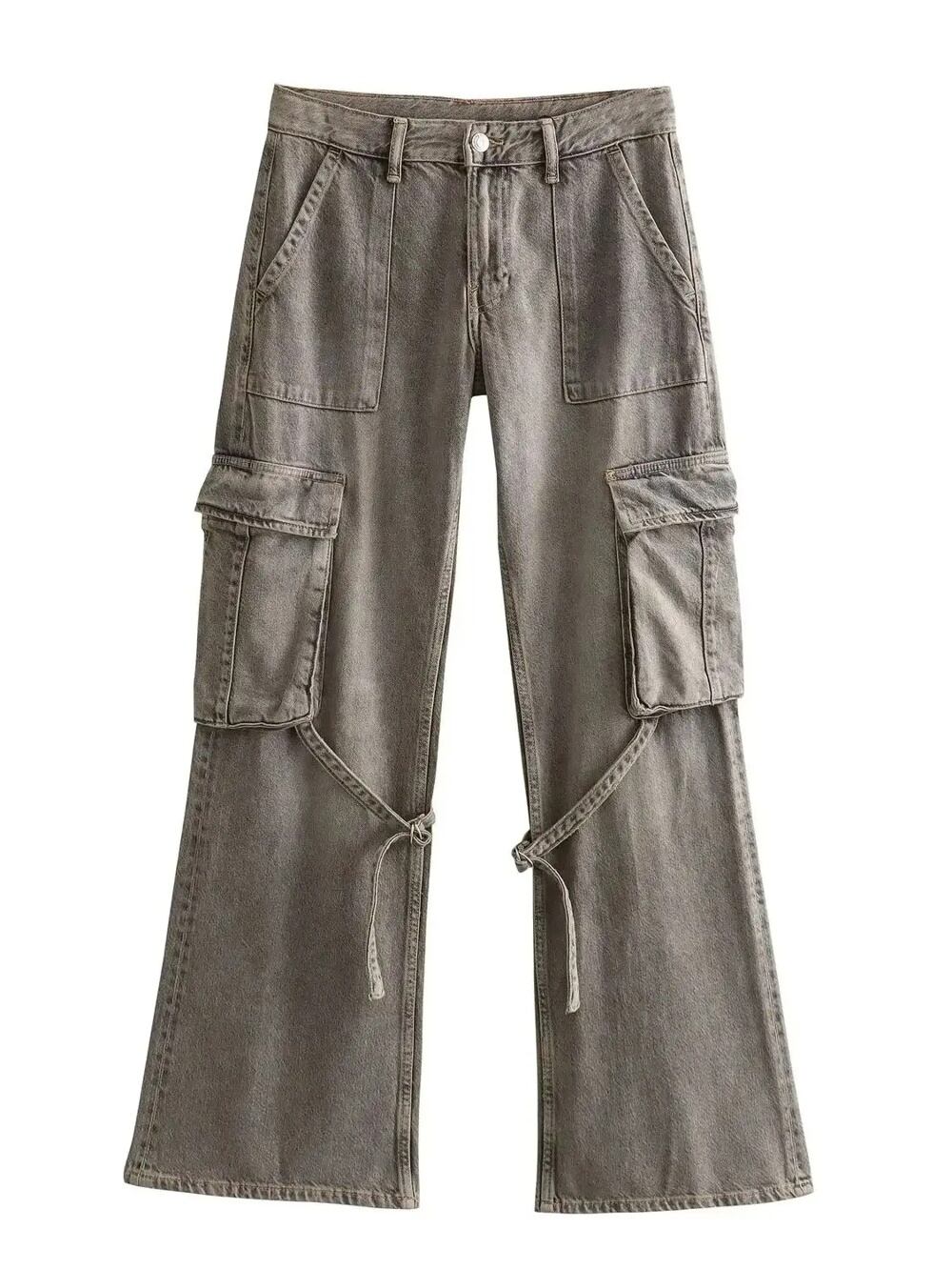 Kodala-女性のシックなデニムストリートウェア、フレアパンツ、スプリングポケット、y2k、Spectrool girl、ルーズスポーツティ、ジップカーゴパンツ、ファッション、春、2022 ボトム ワイドレッグ バギーパンツ T240831222916_02 | DOKO-ME
