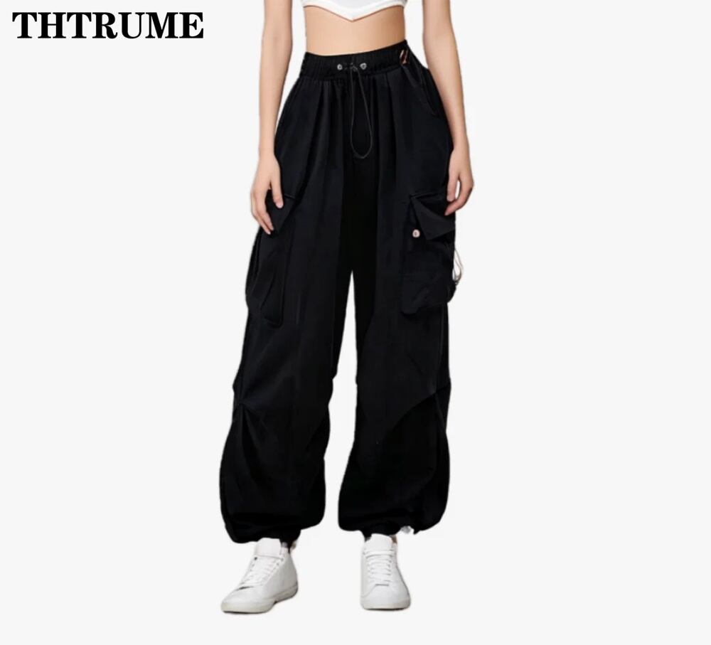 女性用ヴィンテージカーゴパンツ,y2kファッション,特大の伸縮性ウエスト,シックなバギー,カジュアル,オフィス,ストリートウェア ボトム ワイドレッグ バギーパンツ T240831222949_01 | DOKO-ME