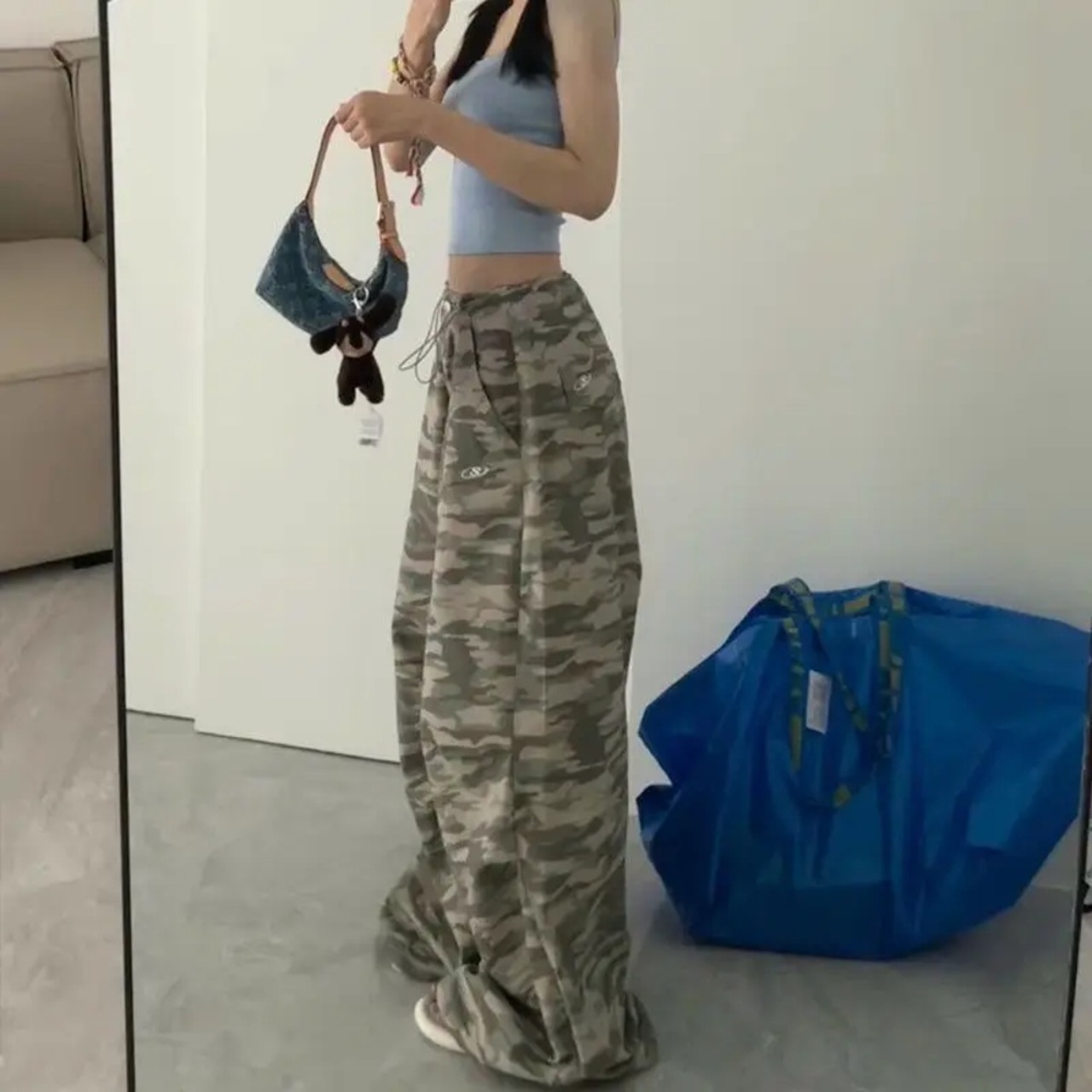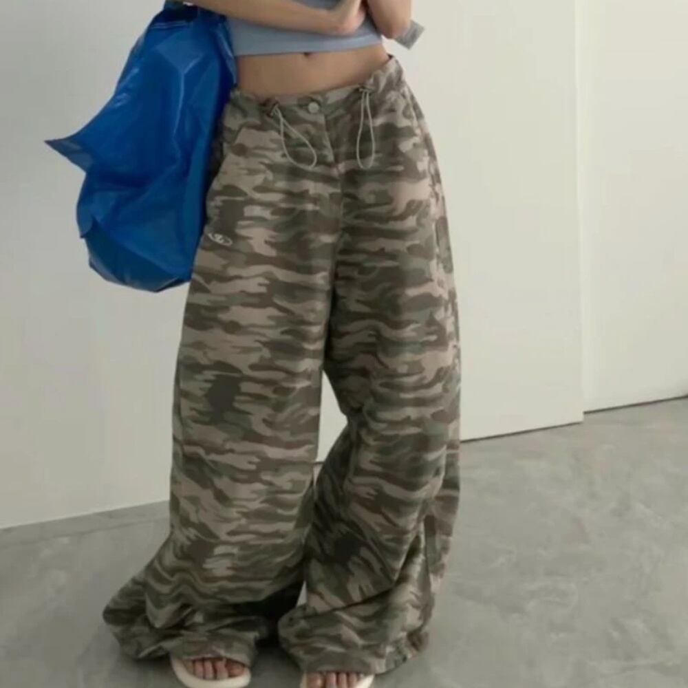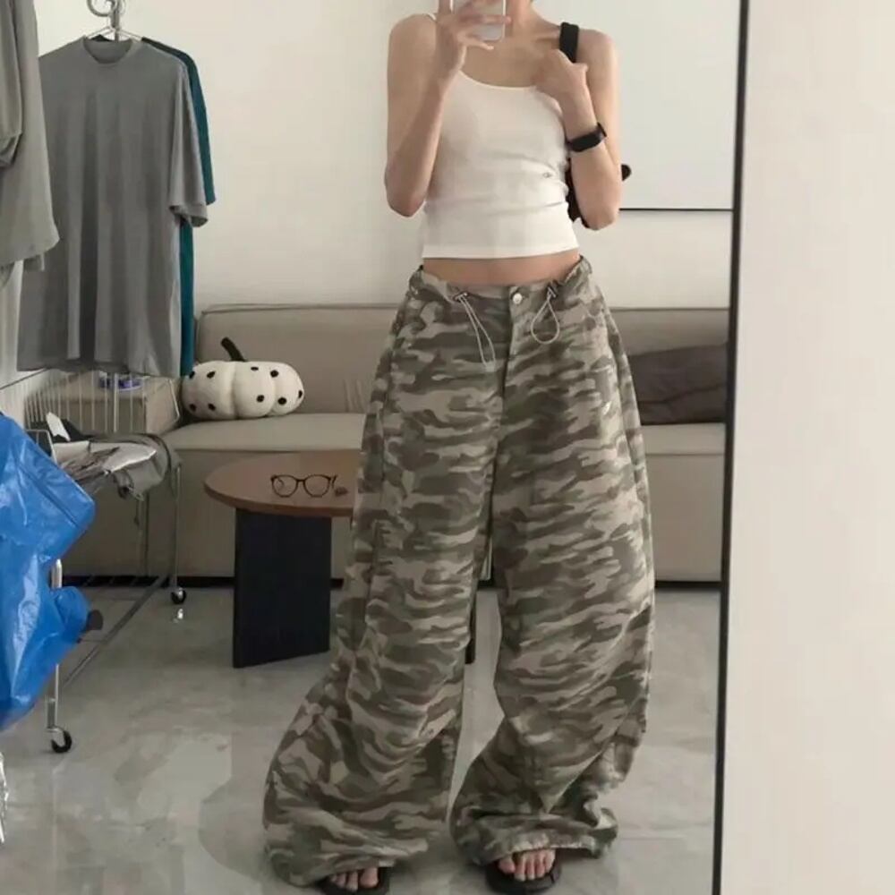 女性のためのdeeptownヴィンテージバギーパンツ、特大ヒップホップ、カモフラージュストリートウェア、ルーズパンツ、韓国のファッション、カジュアルアメリカのレトロ、y2k ボトム ワイドレッグ バギーパンツ T240831223015_01 | DOKO-ME