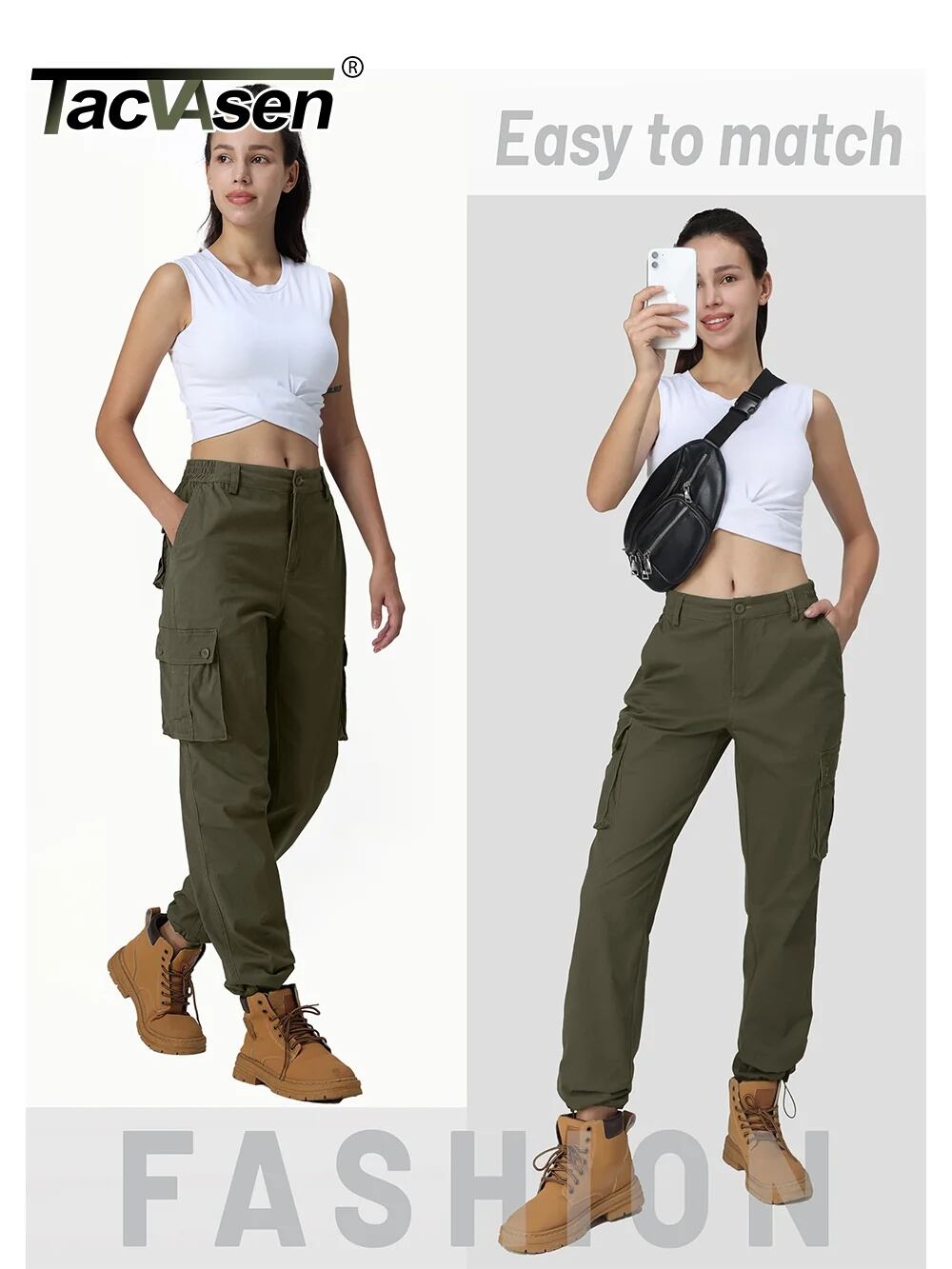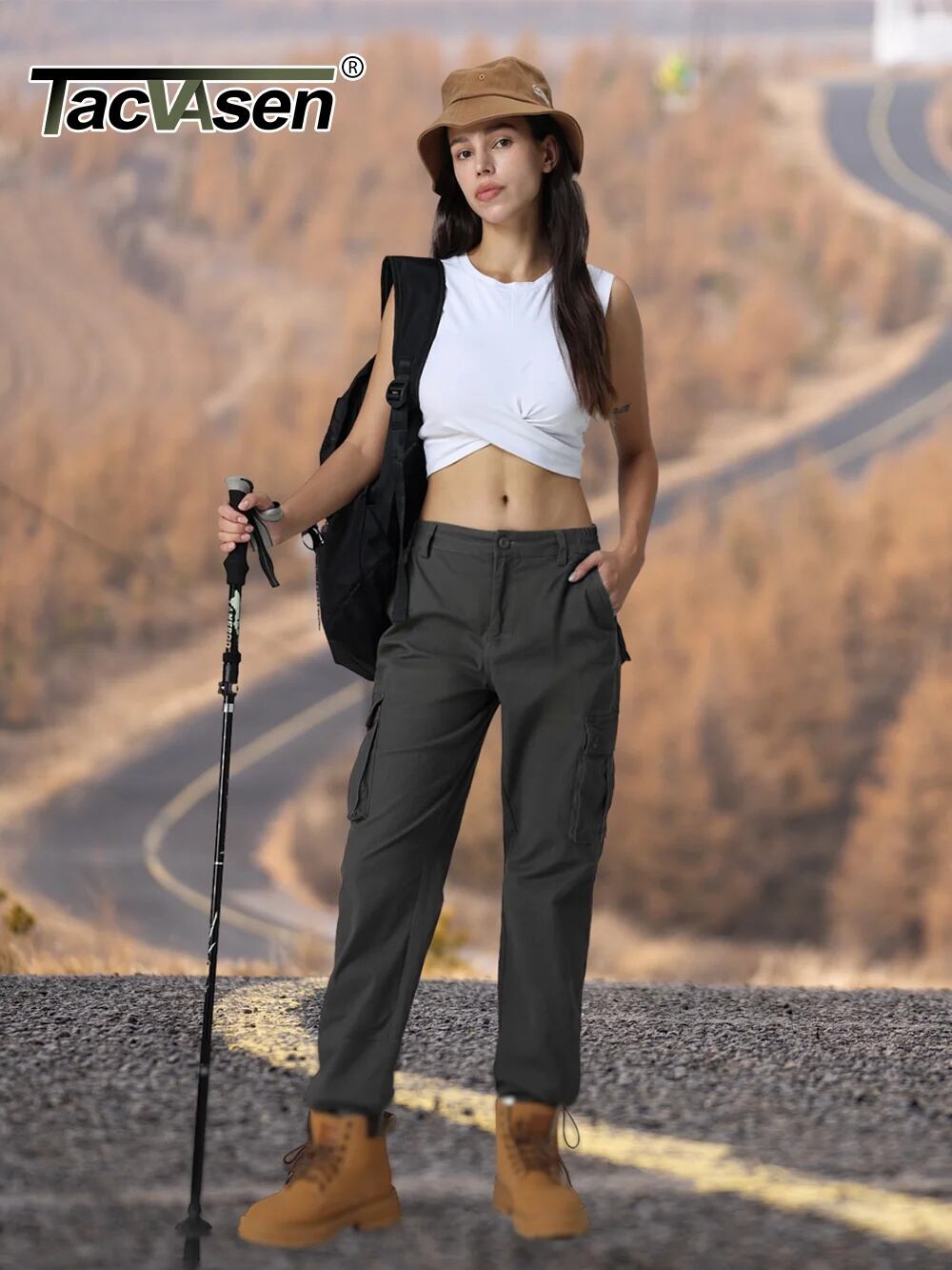 "Tasven-女性用コットンカーゴパンツ,伸縮性ウエスト,アウトドア,ハイキング,仕事用,ヴィンテージy2kパンツ,バギーストリートウェア ボトム ワイドレッグ バギーパンツ T240831223141_02 | DOKO-ME