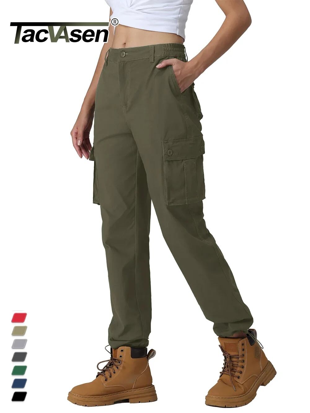 "Tasven-女性用コットンカーゴパンツ,伸縮性ウエスト,アウトドア,ハイキング,仕事用,ヴィンテージy2kパンツ,バギーストリートウェア ボトム ワイドレッグ バギーパンツ T240831223141_04 | DOKO-ME