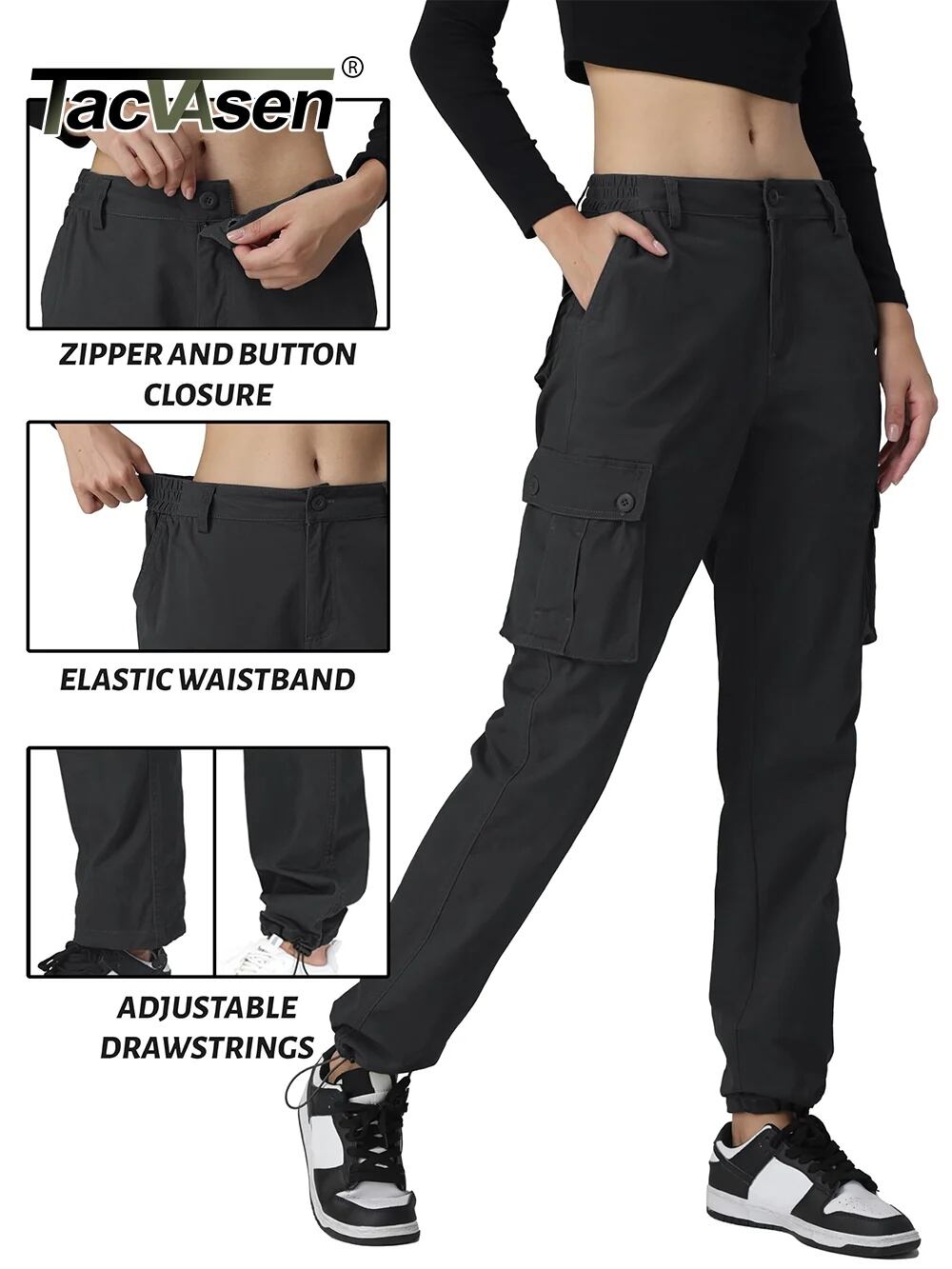 "Tasven-女性用コットンカーゴパンツ,伸縮性ウエスト,アウトドア,ハイキング,仕事用,ヴィンテージy2kパンツ,バギーストリートウェア ボトム ワイドレッグ バギーパンツ T240831223141_07 | DOKO-ME