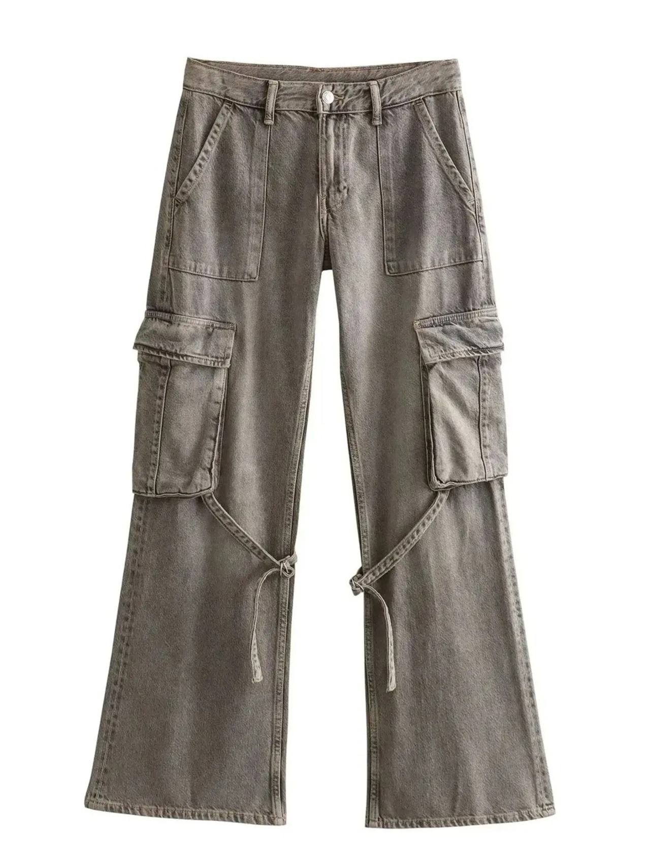 コダック-女性のシックなデニムストリートウェア、フレアパンツ、カーゴパンツ、ルーズポケット、スポーツジップ、クールガール、y2kファッション、秋、2023 ボトム ワイドレッグ バギーパンツ T240831223151_02 | DOKO-ME