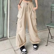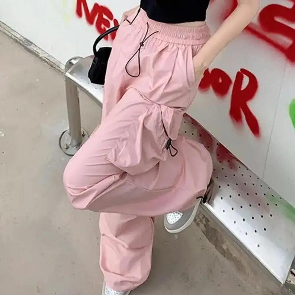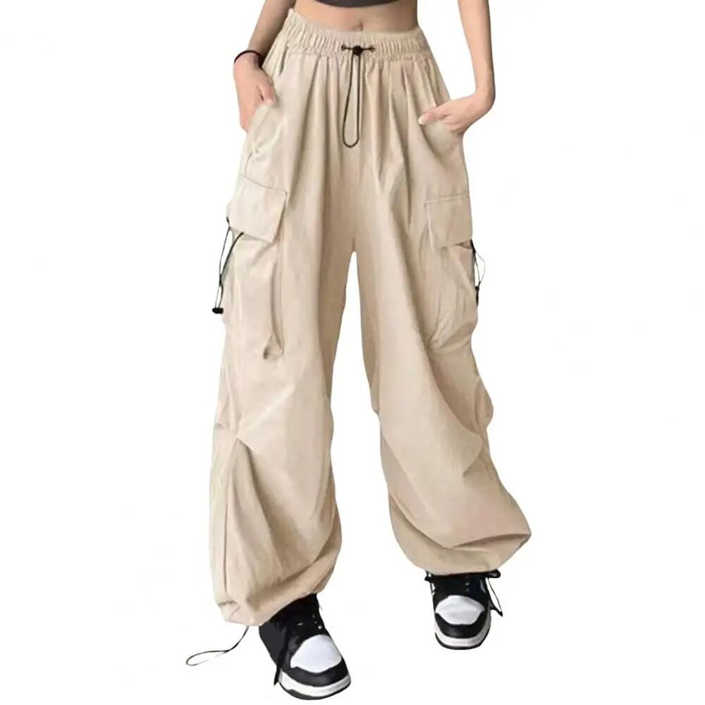 女性用ブラックパラシュートパンツ,カーゴパンツ,特大ポケット,ワイドレッグ,バギー,ストリートウェア,原宿 ボトム ワイドレッグ バギーパンツ T240831223320_03