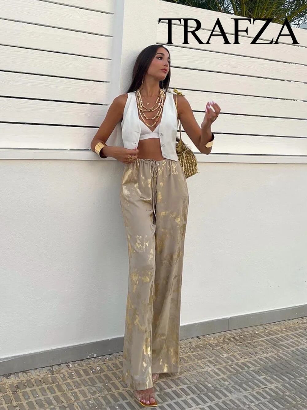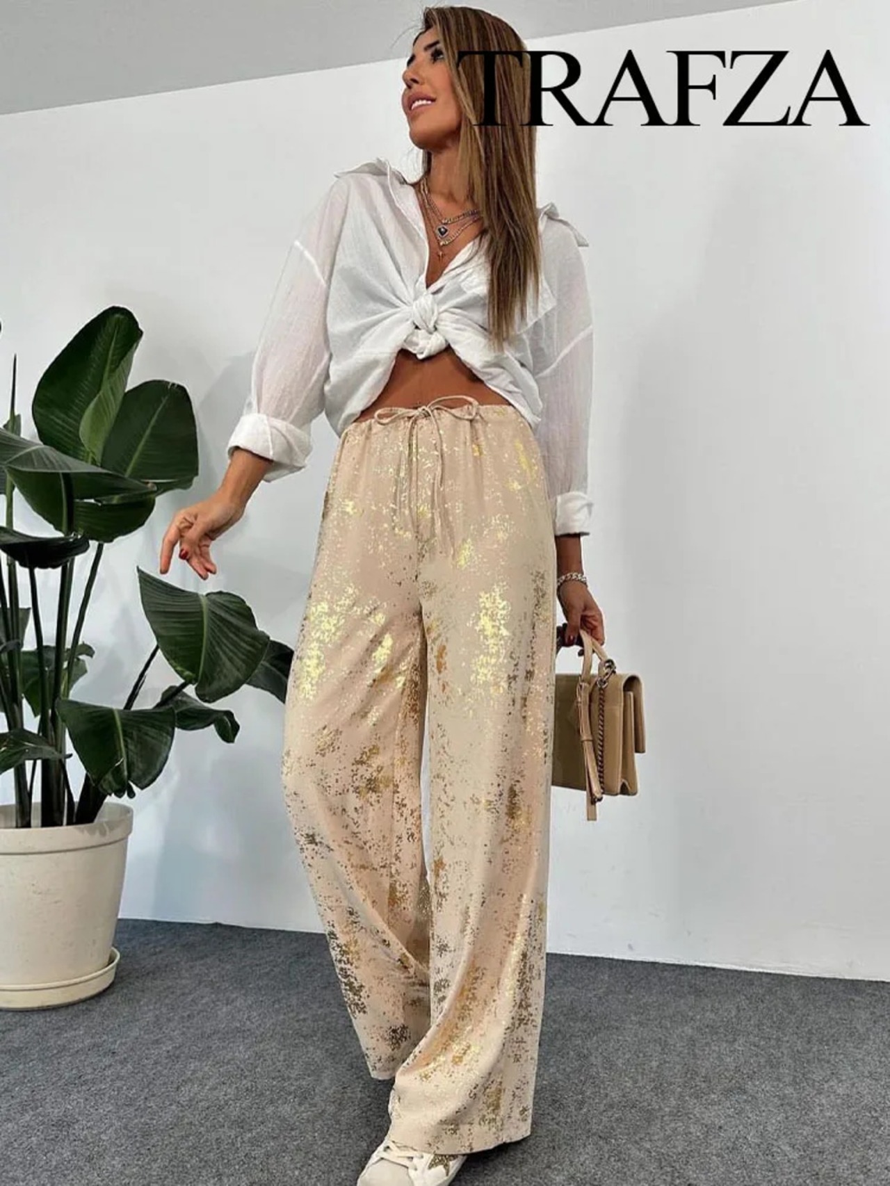 Trafza-女性用ハイウエストメタルプリントバギーパンツ,ドローストリング付きバギーロングパンツ,ルーズフィットストリートウェア,ファッショナブル,y2k,2023 ボトム ワイドレッグ バギーパンツ T240831223750_02 | DOKO-ME