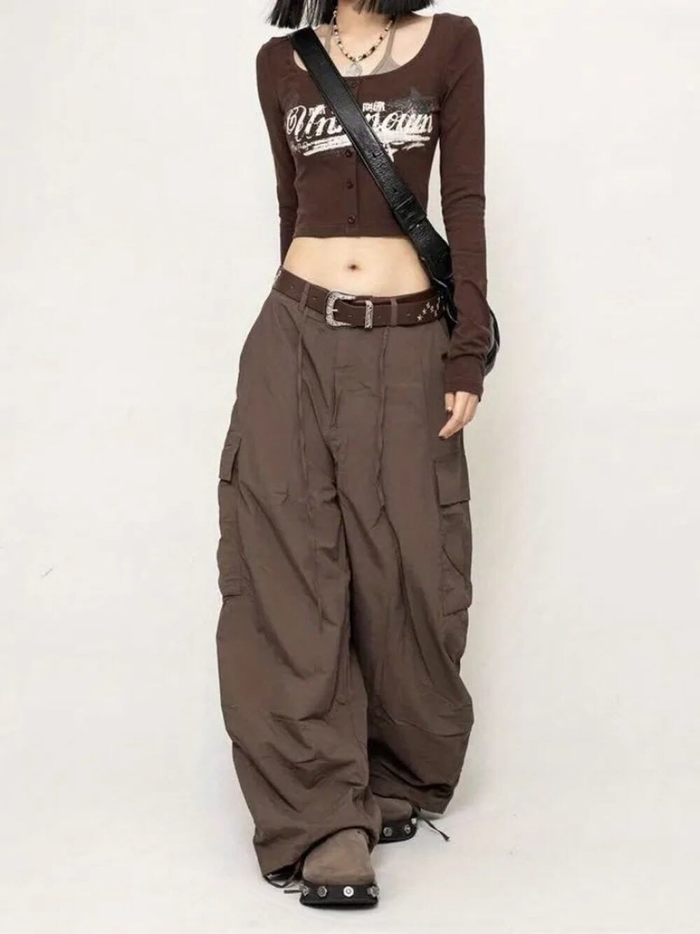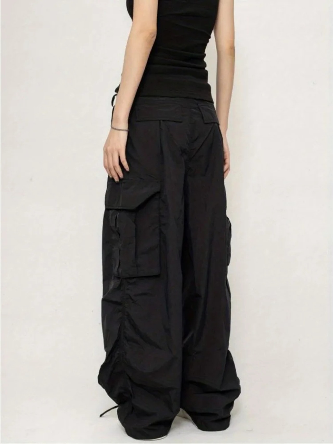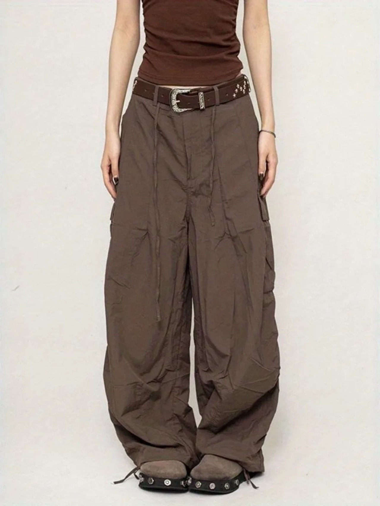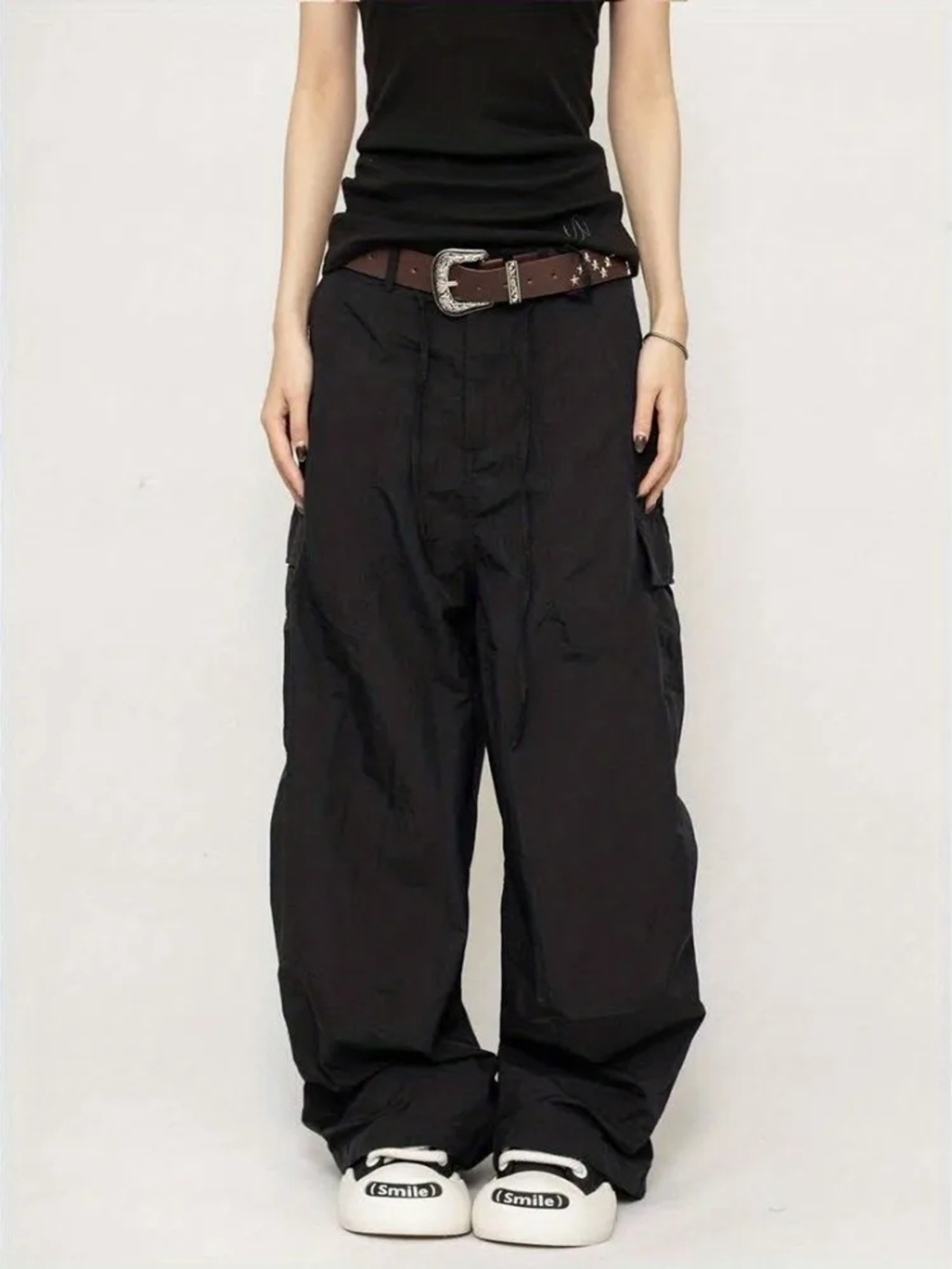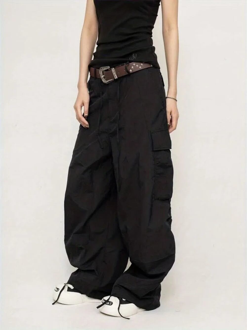 広州-レディースヴィンテージバギーカーゴパンツ、特大ジョギング、スウェットパンツ、韓国ファッションパンツ、ポケット、原宿ストリートウェア、y2k ボトム ワイドレッグ バギーパンツ T240831223810_02 | DOKO-ME