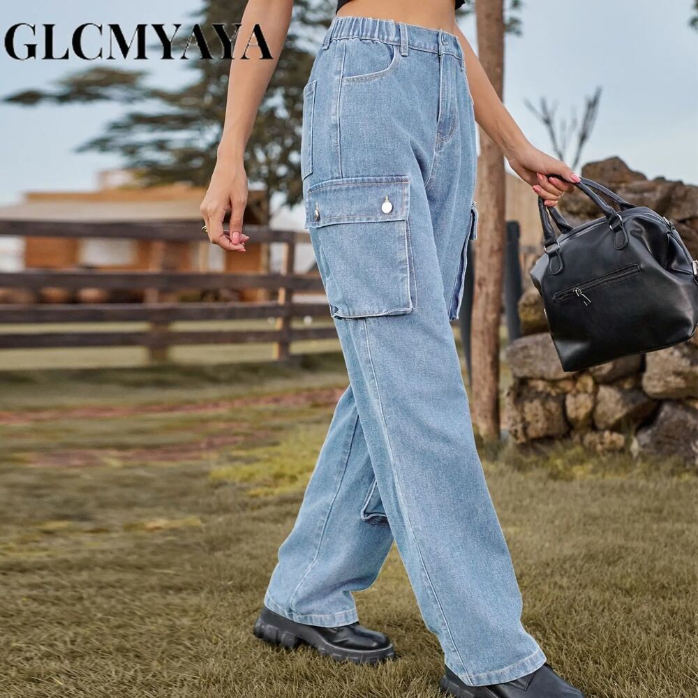 GLCMYAYA-女性用ワイドレッグカーゴパンツ、ビンテージストリートウェア、バギージーンズ、カジュアルウェア、ハイウエスト、女性用パンツ ボトム ワイドレッグ バギーパンツ T240831223931_01 | DOKO-ME