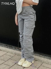 レディースヴィンテージカーゴパンツ、バギージーンズ、90sストリートウェア、ポケット、ワイドレッグ、ハイウエスト、ストレート2kデニム、オーバーオール、ファッション ボトム ワイドレッグ バギーパンツ T240831224025_01 | DOKO-ME